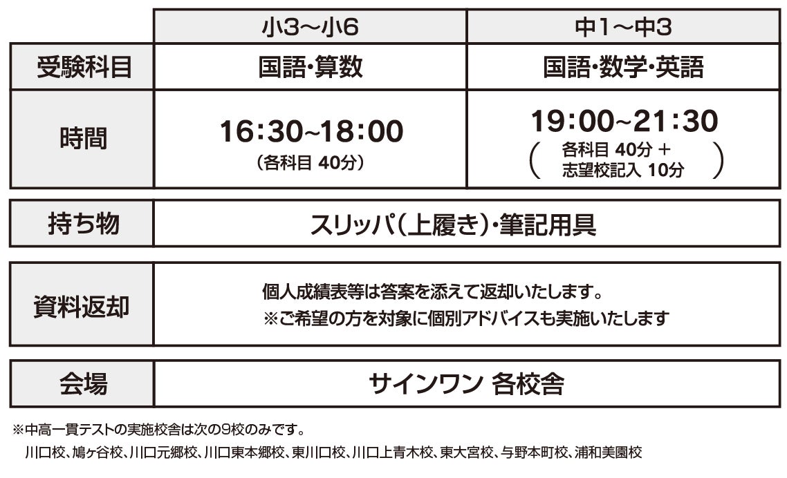 【埼玉県の進学塾サインワン】小学生の学力診断に! 6月8日・7月6日、小3~中3生対象の夏期オープンテスト開催!