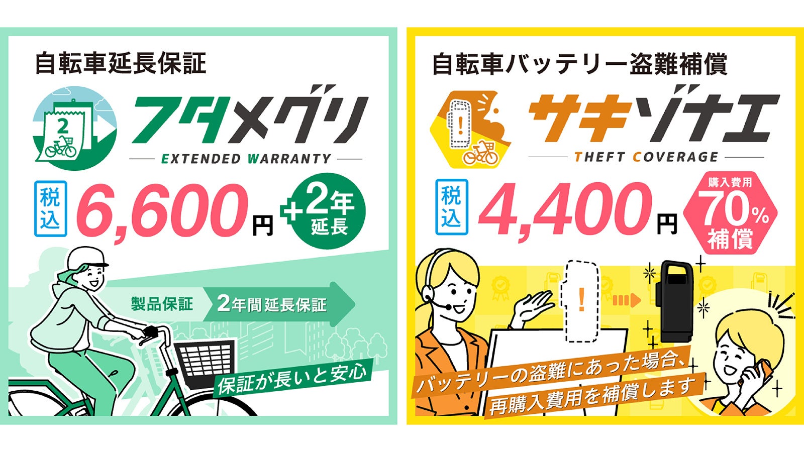 新たな有償オプションサービス、自転車延長保証「フタメグリ」と自転車バッテリー盗難補償「サキゾナエ」の販売を開始