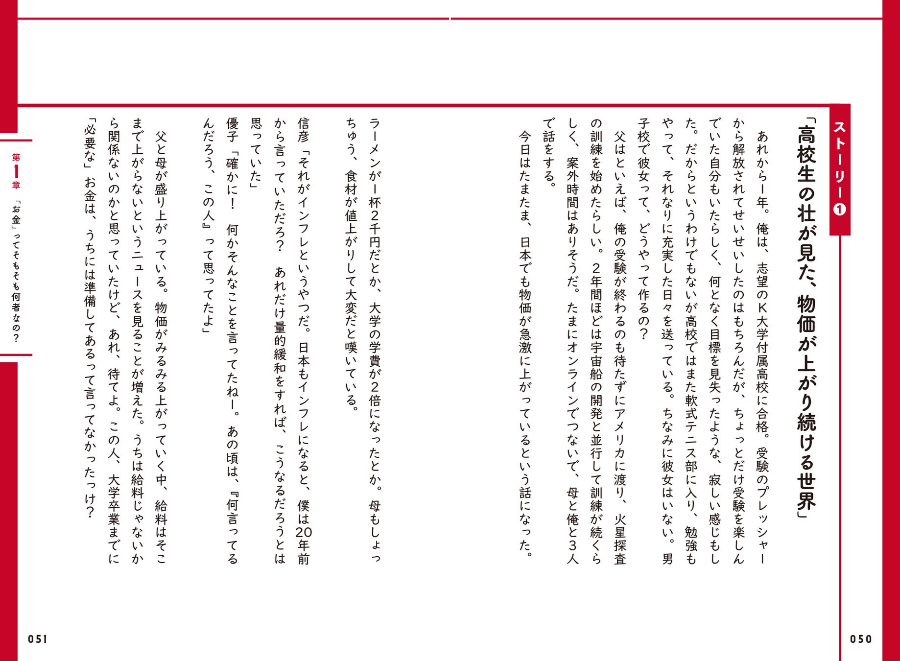 さらに各章の最後では、ノートを読んだ息子が、高校生、大学生、インターンシップ生、就活生、投資家と成長していく中で父からのお金の話を思い出し、腹落ち(心から納得)していくという小説風トピックを盛り込むことで、理解がより深まるよう工夫されています。