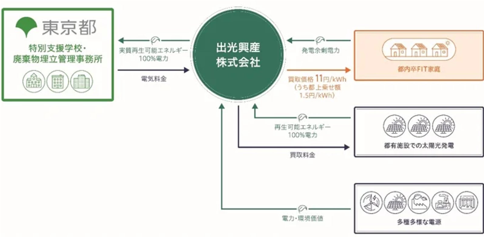 そのため、都内のご家庭の太陽光発電で発電された卒FIT電力※1を含む再生可能エネルギー100%の電力※2を一部の都有施設で活用する、「とちょう電力プラン」を実施しています。