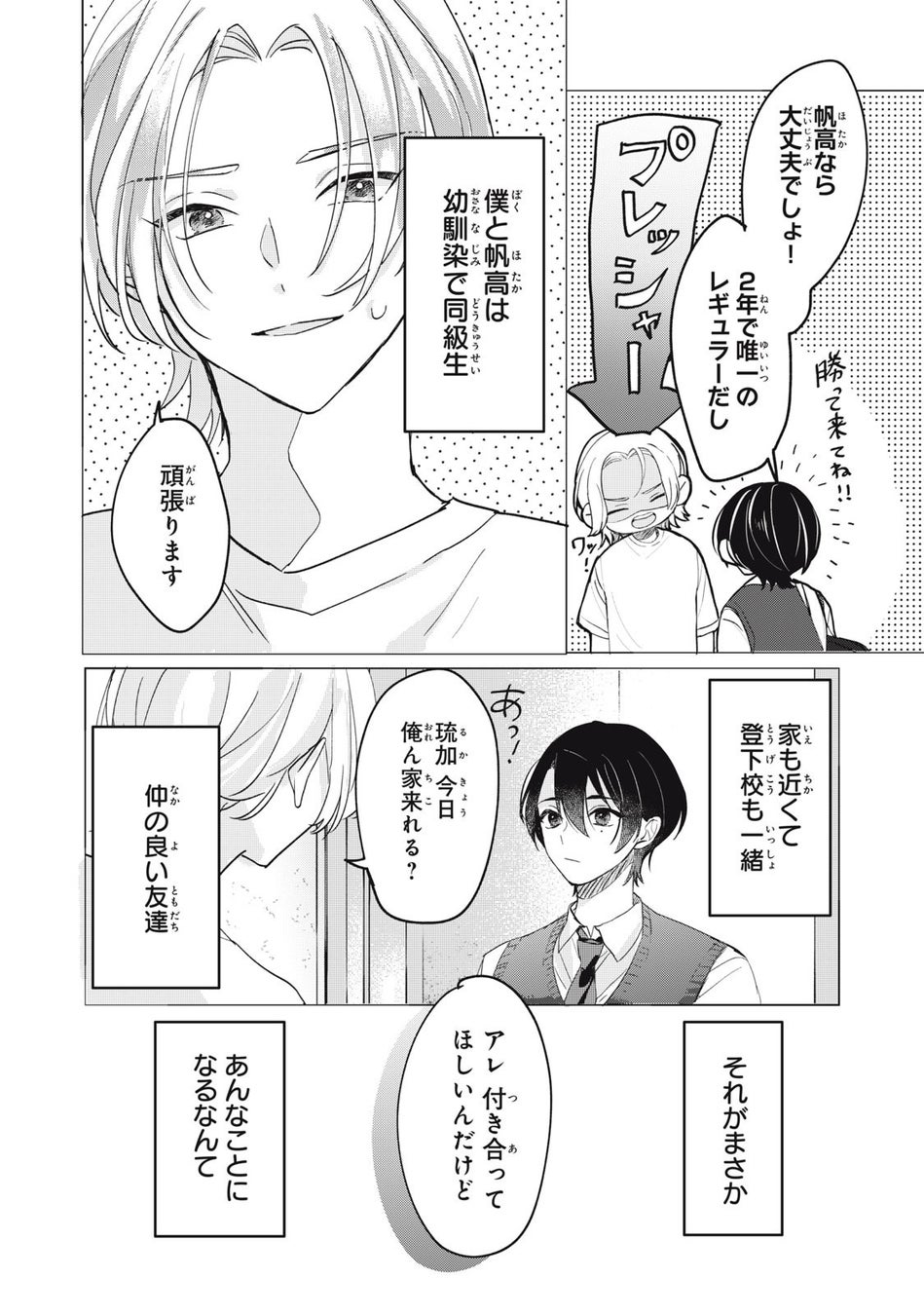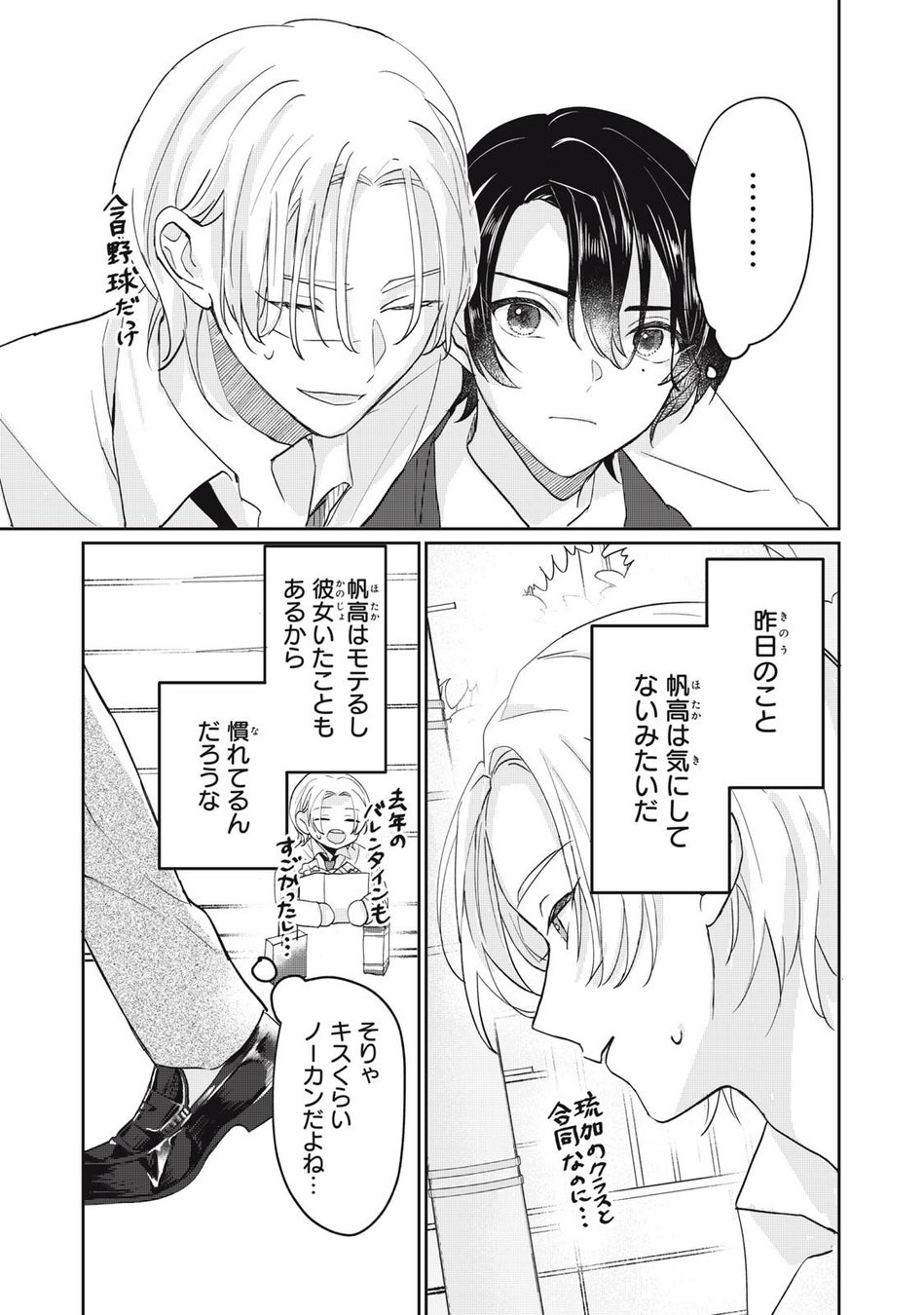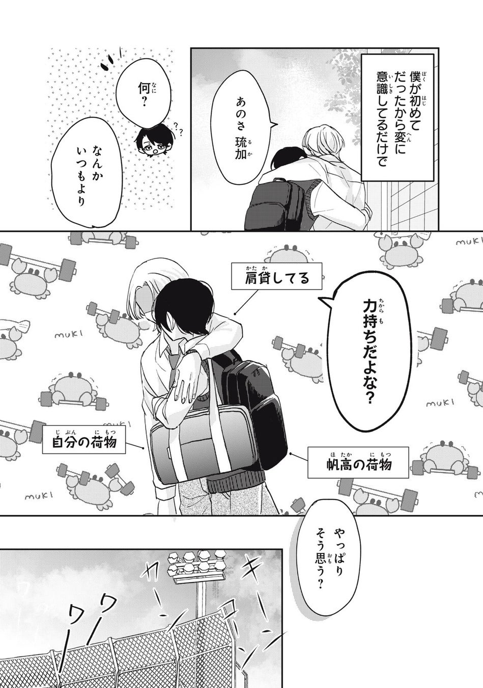 高校生の琉加はある日、幼なじみの帆高と「事故チュー」してしまう。