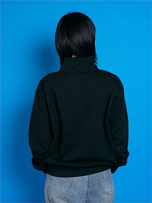 ↑163センチ/『エンジェルブルー・ナカムラくん刺繍ハーフジップスウェット』ブラック・Mサイズ着用