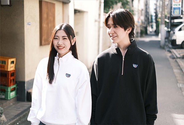 また、今回の再販売を記念し、“ナカムラくん刺繍ハーフジップスウェット”が新たに登場。やや厚手の生地(10オンス)で冬のファッションに取り入れやすく、フロントにさりげなくあしらわれたナカムラくんの刺繍がキュートなアイテムです(バックに刺繍はございません)。