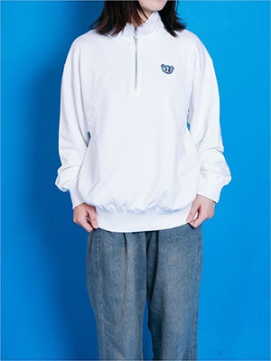 ↑163センチ/『エンジェルブルー・ナカムラくん刺繍ハーフジップスウェット』ホワイト・Lサイズ着用