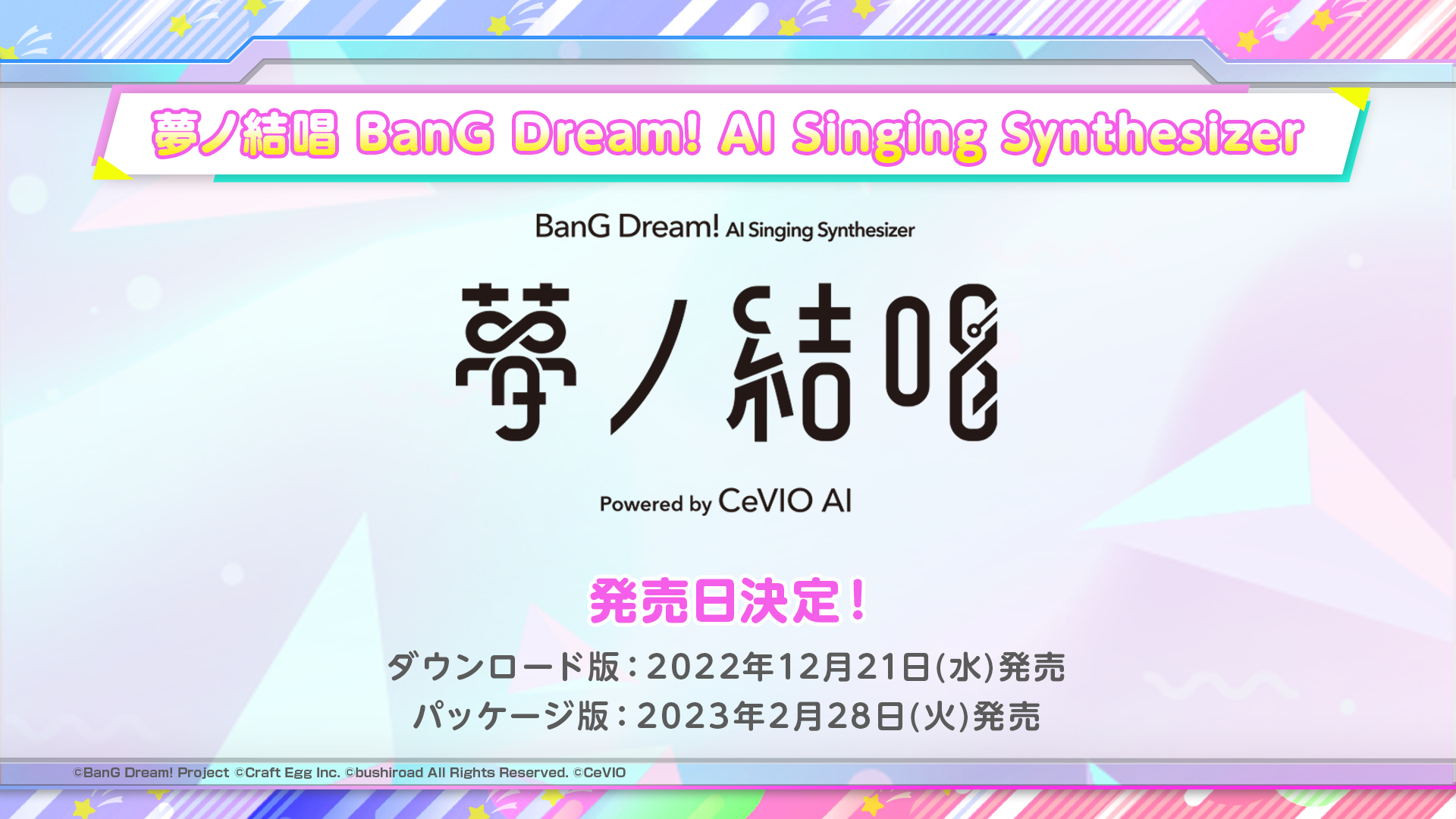 - 「夢ノ結唱 BanG Dream! AI Singing Synthesizer」発売日が決定!