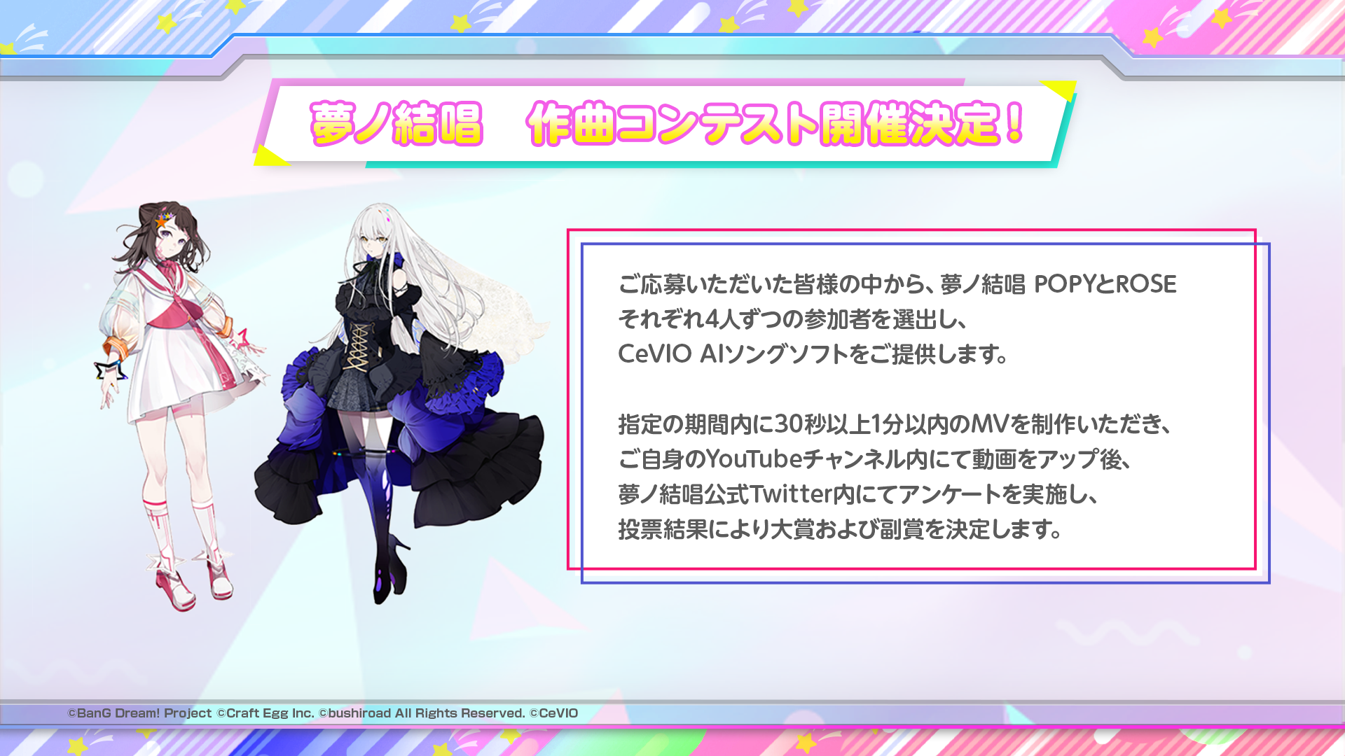 <「夢ノ結唱 BanG Dream! AI Singing Synthesizer」作曲コンテスト開催詳細>