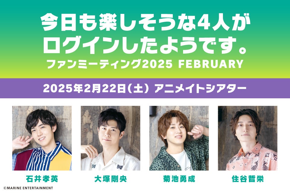 『今日も楽しそうな4人がログインしたようです。』は石井孝英さん、大塚剛央さん、菊池勇成さん、住谷哲栄さんの4人がゲームやトークをしつつわちゃわちゃと遊ぶ番組。アニメイト池袋本店B2Fの多目的ホール・アニメイトシアターで2025年2月22日(土)にファンミーティングを開催致します。2回公演で第1部の開演は14:30、第2部の開演17:45。現在チケットページにてイベント参加チケットを販売中。イベントの生配信も実施致します。