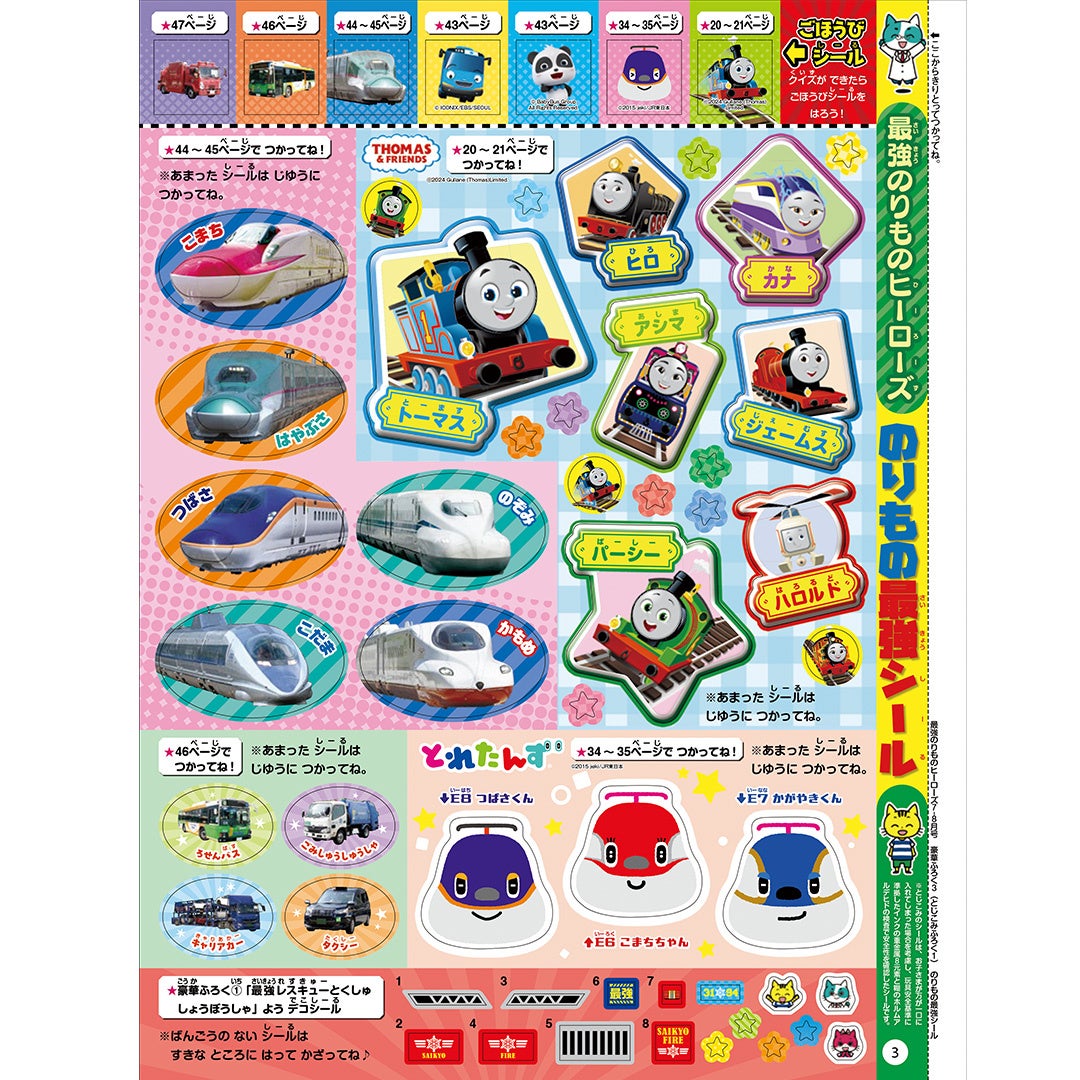 DVDには3月にデビューした山形新幹線のE8系を大特集! 大迫力の消防訓練の様子や、次世代ののりもの、中国・四国の特急列車、踏切のおはなしアニメなどスペシャルなチャプターが勢ぞろい! きかんしゃトーマスの新しい施設やワクワクさんこと久保田雅人さんによる工作映像もお見逃しなく。他にものりものシールがたっぷり付いて充実の1冊☆