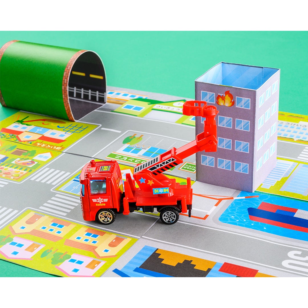 トンネル、ビル、消防署などタウンマップと一緒に遊べるジオラマ工作!