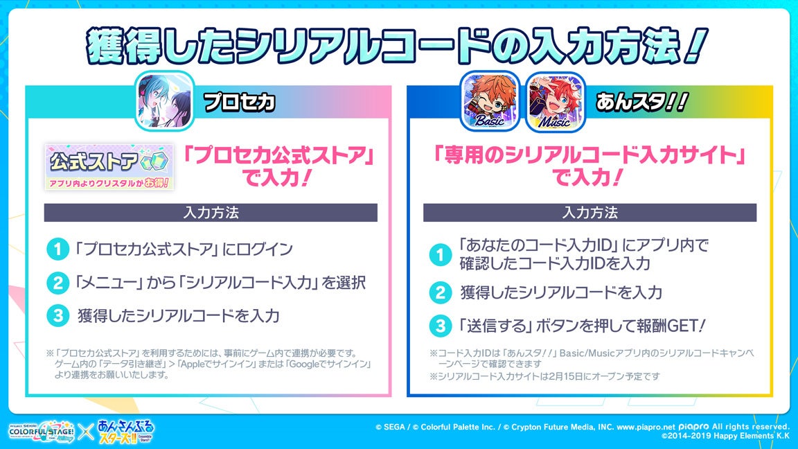 両アプリで獲得したシリアルコードは、『プロセカ』では公式ストアから入力することで、各豪華報酬が入手できます。ぜひチャレンジしてみてください!