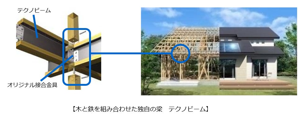 パナソニック耐震住宅工法「テクノストラクチャー」は、構造の要となる梁に木と鉄を組み合わせた独自の梁「テクノビーム」を活用することで、木造住宅に鉄の強さを加えたオリジナル工法です。