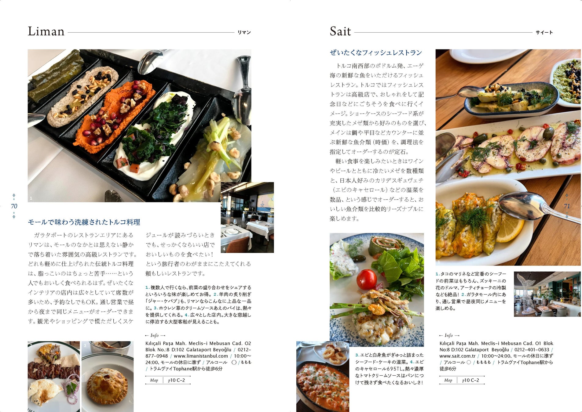 トルコ料理 /イスタンブールで食べる /トルコ料理のメニューカタログ /ストリートフードの誘惑/トルコの伝統菓子を味わう /イスタンブールのカフェ事情/チャイとカフヴェ /トルコで味わいたいビールとラク/トルコワイン /トルコの家庭料理/トルコの食材 ほか