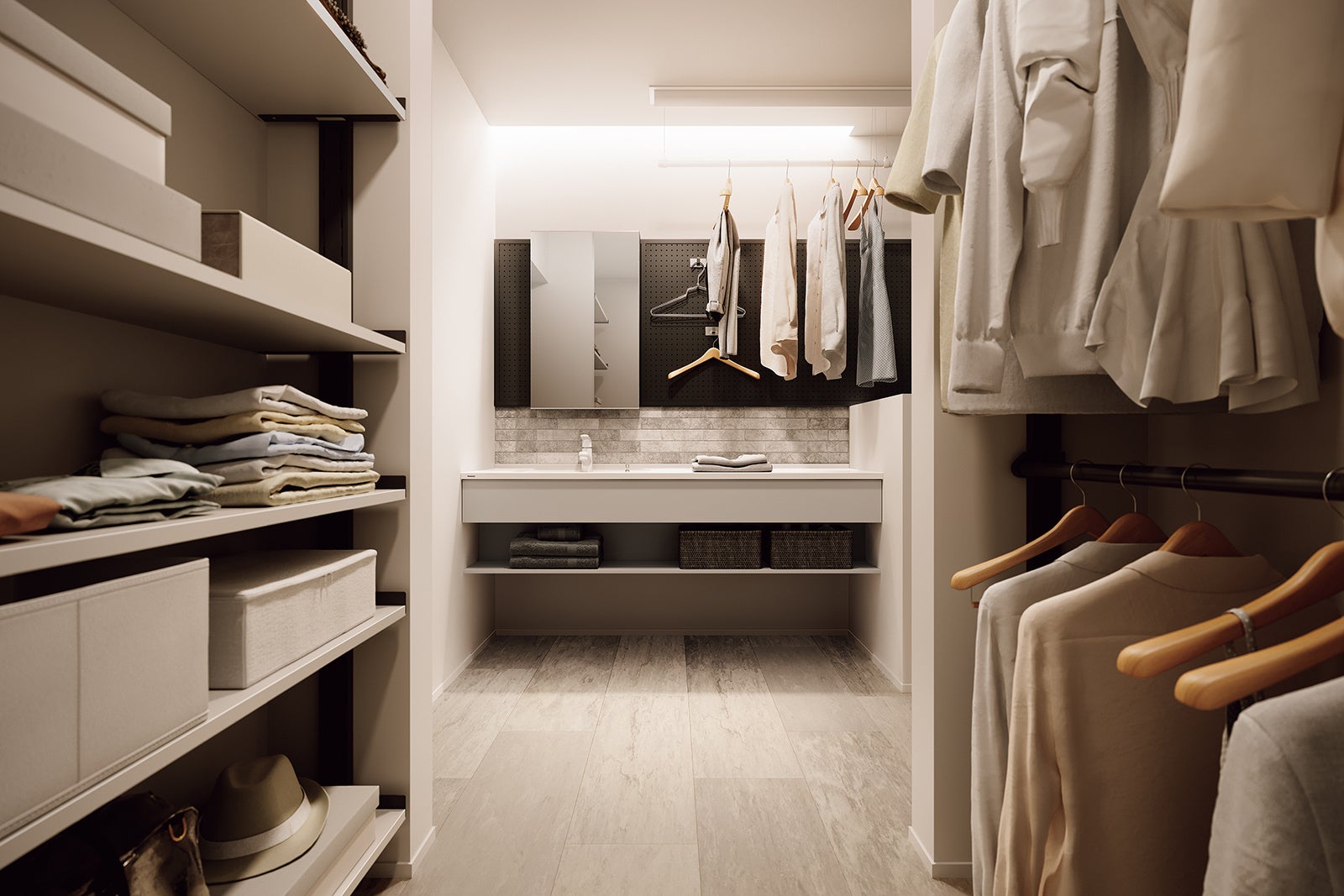 当社はこのような背景から、洗面化粧台が脱衣所にあるのが当たり前ではなく、脱衣所から解放し、「脱・脱衣所」として住まいのあらゆる場所で多用途に使えることを提唱、「無意識の快適を追求」をコンセプトに「Panasonic DRESSING」として再定義。人と空間に調和し、一人ひとりのくらしの動線に溶け込む当社独自の提案をおこないます。