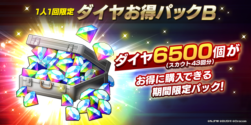 - 通常よりお得にダイヤ購入ができる期間限定「ダイヤお得パックA」と「ダイヤお得パックB」が再登場!