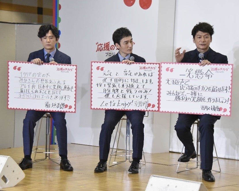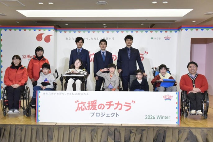 昨日11月30日に本プロジェクトの始動に合わせて開催されたキックオフイベントには、スペシャルアンバサダーの稲垣 吾郎さん、草彅 剛さん、香取 慎吾さん、16年ぶりのパラリンピック出場を決めた車いすカーリングの小川 亜希(おがわ あき)選手と飯野 明子(いいの あきこ)コーチ、元パラアイスホッケー日本代表でパラ応援大使の上原 大祐(うえはら だいすけ)さんがが登場。会場では、プロジェクト名称「応援のチカラ」の発表に加え、都立墨東特別支援学校の児童・生徒たちとコラボレーションする「“応援のチカラ“アート」についてトークが展開されました。