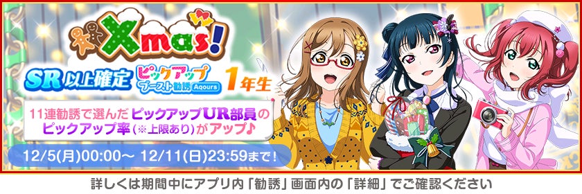 株式会社ブシロード(本社:東京都中野区、代表取締役社長:木谷高明)は、KLab株式会社(本社:東京都港区、代表取締役社長:森田英克)と共同開発いたしましたスマートフォン向けアプリ『ラブライブ!スクールアイドルフェスティバル』(以下、スクフェス) において2022スクフェスクリスマスキャンペーン第2弾の開催をお知らせいたします。