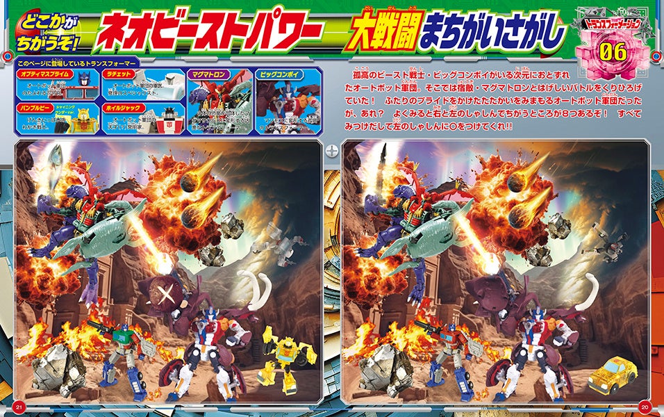 ムックにはタカラトミーの監修のもと、「トランスフォーマー」のキャラクターが多数登場する、間違い探し、迷路、パズルなど、家族で楽しめるさまざまなゲームを掲載。漫画も掲載されていて、「トランスフォーマー」初心者でも気軽に楽しめる内容になっています!