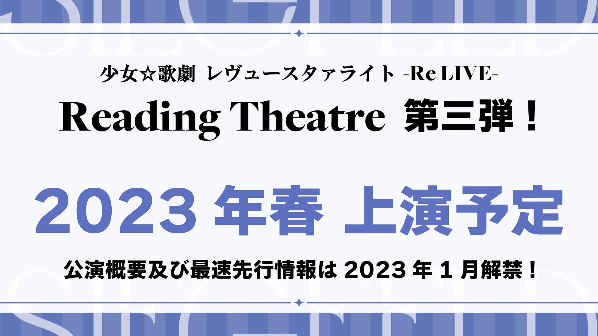 ■『少女☆歌劇 レヴュースタァライト -Re LIVE- Reading Theatre』の第3弾が来年2023年春に上演が決定。