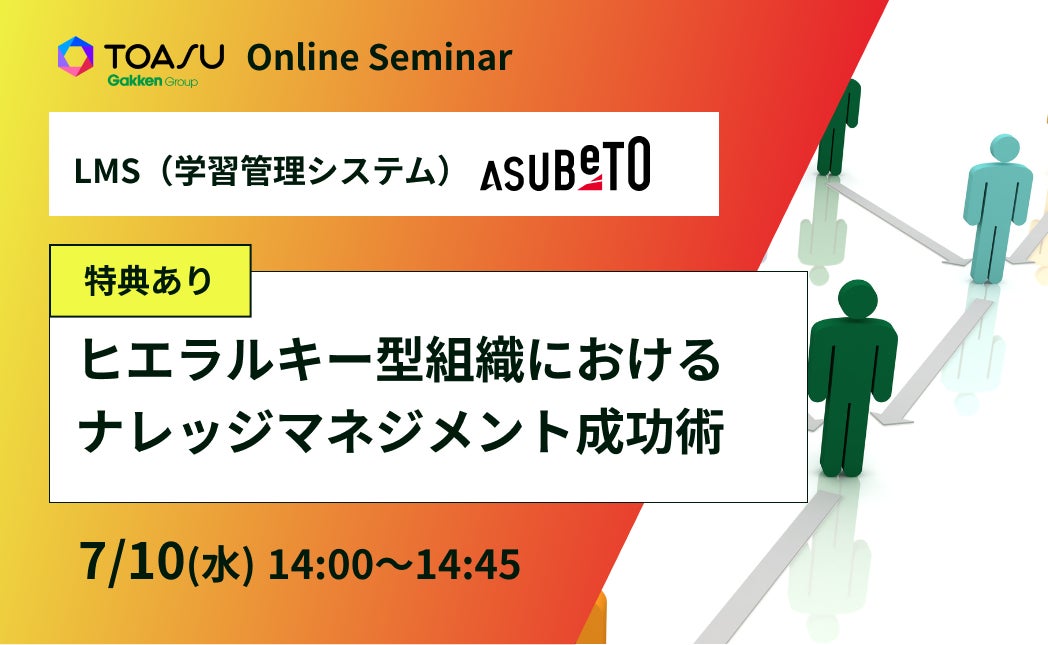 学研グループの株式会社TOASU、無料セミナー「ヒエラルキー組織における階層別ナレッジマネジメント成功術」を開催