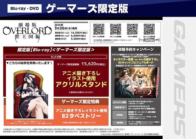 【Blu-ray】劇場版 オーバーロード 聖王国編 限定版 ≪ゲーマーズ限定版 アニメ描き下ろしイラスト使用アクリルスタンド付≫