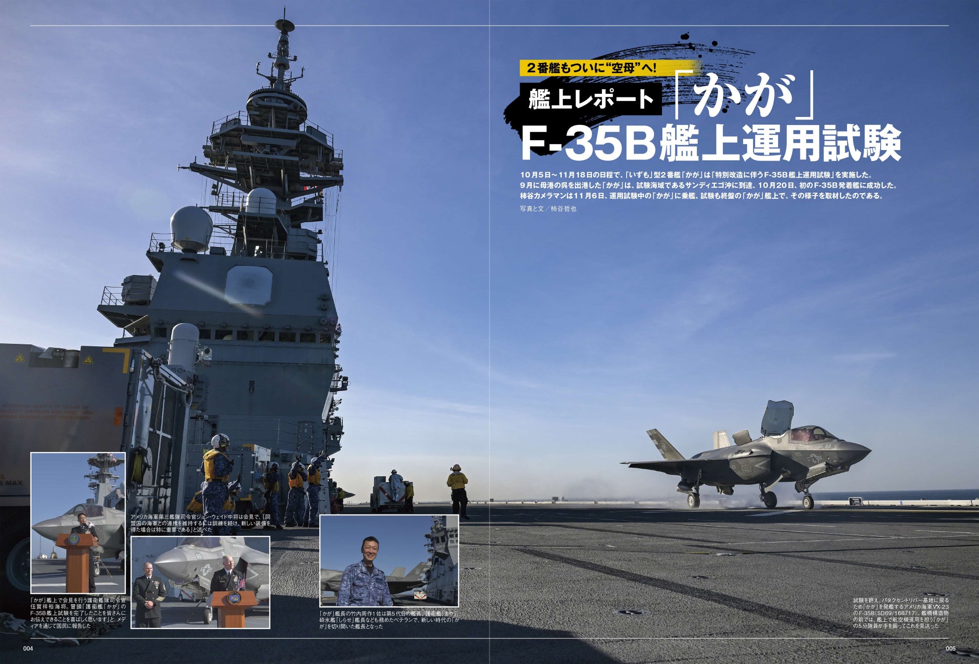 本誌では、現地取材により「かが」の艦上運用試験の模様を迫力ある写真ともにいち早くレポート。さらに、「いずも」型の概要、最新のディテールまで網羅している。