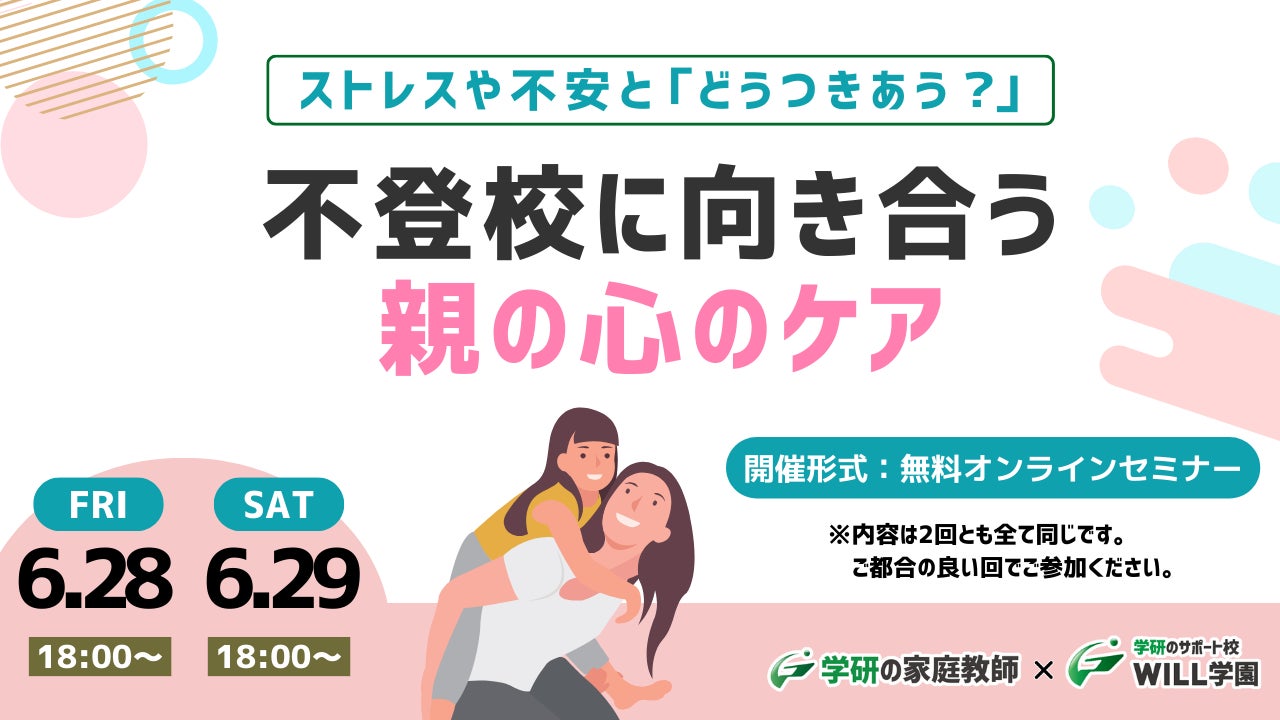 学研WILL学園が「ストレスや不安とどうつきあう?~不登校に向き合う親の心のケア」無料オンラインセミナーを6月28日(金)、6月29日(土)に開催いたします!