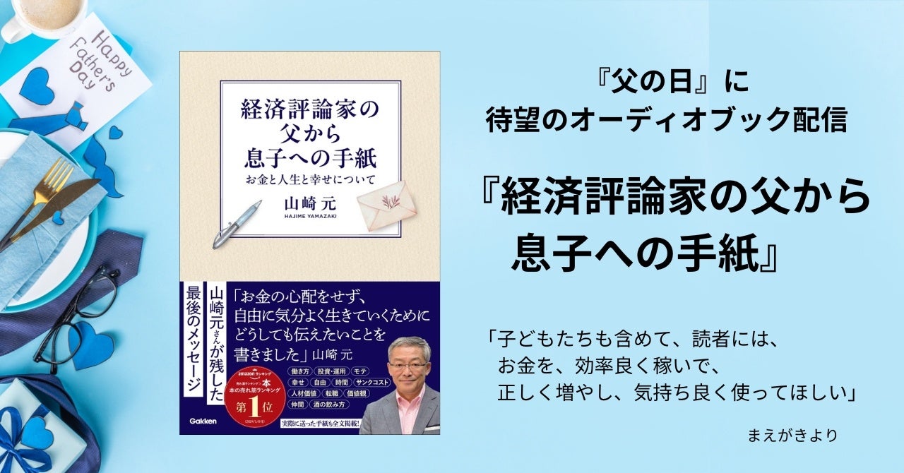 株式会社 学研ホールディングス(東京・品川/代表取締役社長:宮原博昭)のグループ会社、株式会社 Gakken(東京・品川/代表取締役社長:五郎丸徹)は、2024年6月16日(日)に『経済評論家の父から息子への手紙』(著:山崎元)のオーディオブックを、Amazonオーディブル(以下、Audible)にて配信開始いたします。