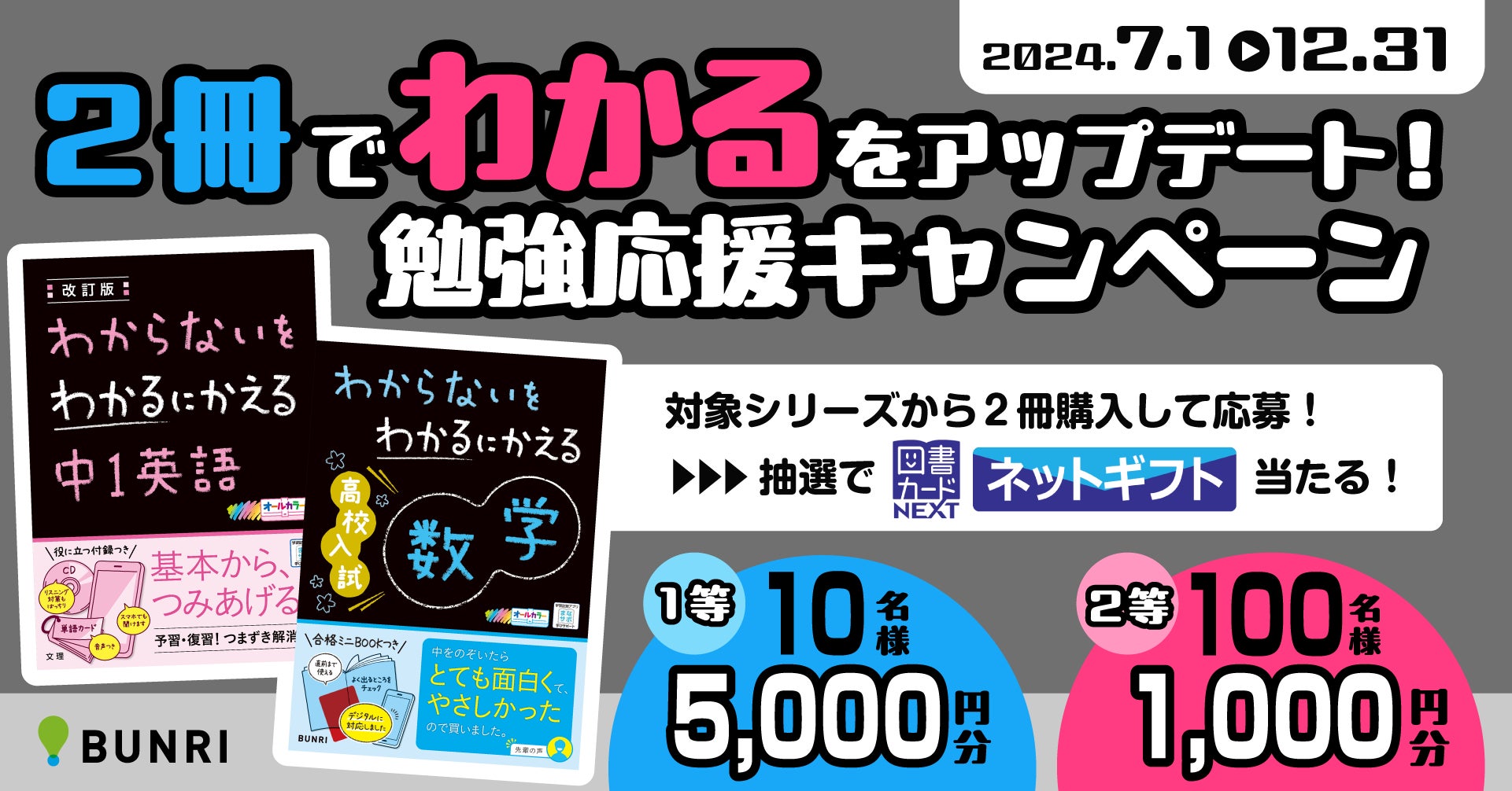 7月1日から始まった「2冊でわかるをアップデート!勉強応援キャンペーン」は、わからないをわかるにかえるシリーズを2冊購入したレシートの写真で応募が可能です。