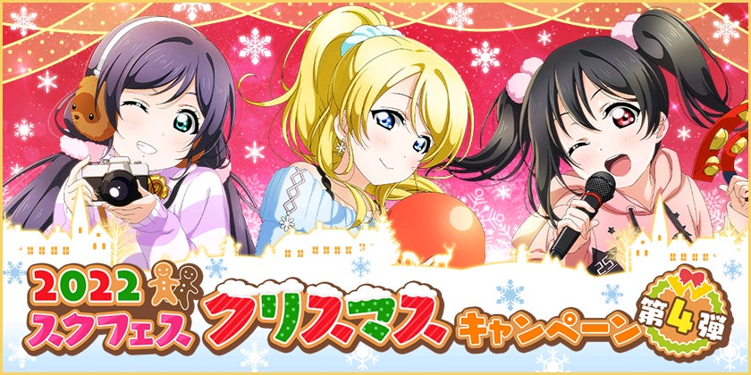 株式会社ブシロード(本社:東京都中野区、代表取締役社長:木谷高明)は、KLab株式会社(本社:東京都港区、代表取締役社長:森田英克)と共同開発いたしましたスマートフォン向けアプリ『ラブライブ!スクールアイドルフェスティバル』(以下、スクフェス) において2022スクフェスクリスマスキャンペーン第4弾の開催をお知らせいたします。
