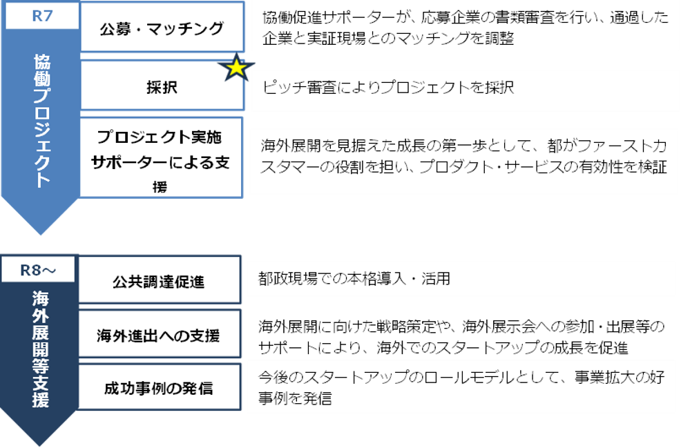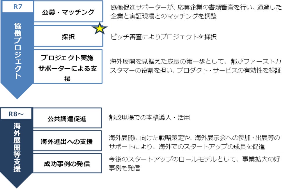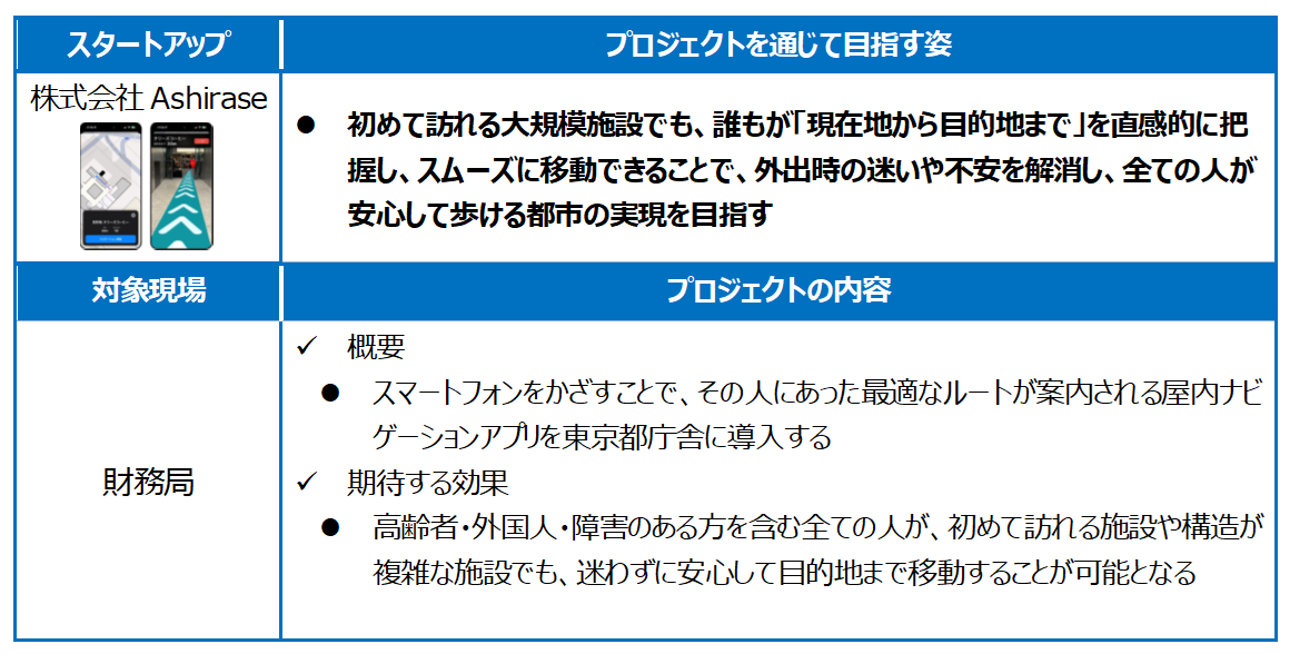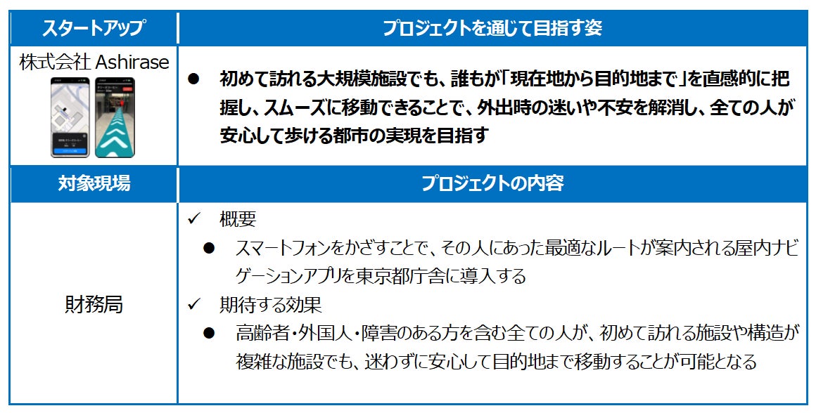 東京都では、都との協働をきっかけとしてスタートアップの成長を支援する「キングサーモンプロジェクト」を実施しています。スタートアップのプロダクトやサービスの都政現場等での実証から海外市場へ向けた事業展開のサポートまで、一気通貫の支援を行うことで、グローバル市場を席捲し、今後のロールモデルとなるような課題解決型のスタートアップを輩出することを目指し、5期にわたり計22件のプロジェクトを採択してきました。