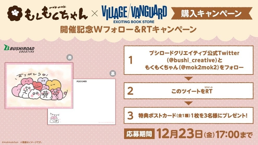 株式会社ブシロード(本社:東京都中野区、代表取締役社長:木谷高明)のグループ会社にあたる株式会社ブシロードクリエイティブ(本社:東京都中野区、代表取締役社⻑:成⽥耕祐)は、『もくもくちゃん』とヴィレッジヴァンガードの購入キャンペーンを実施致します。