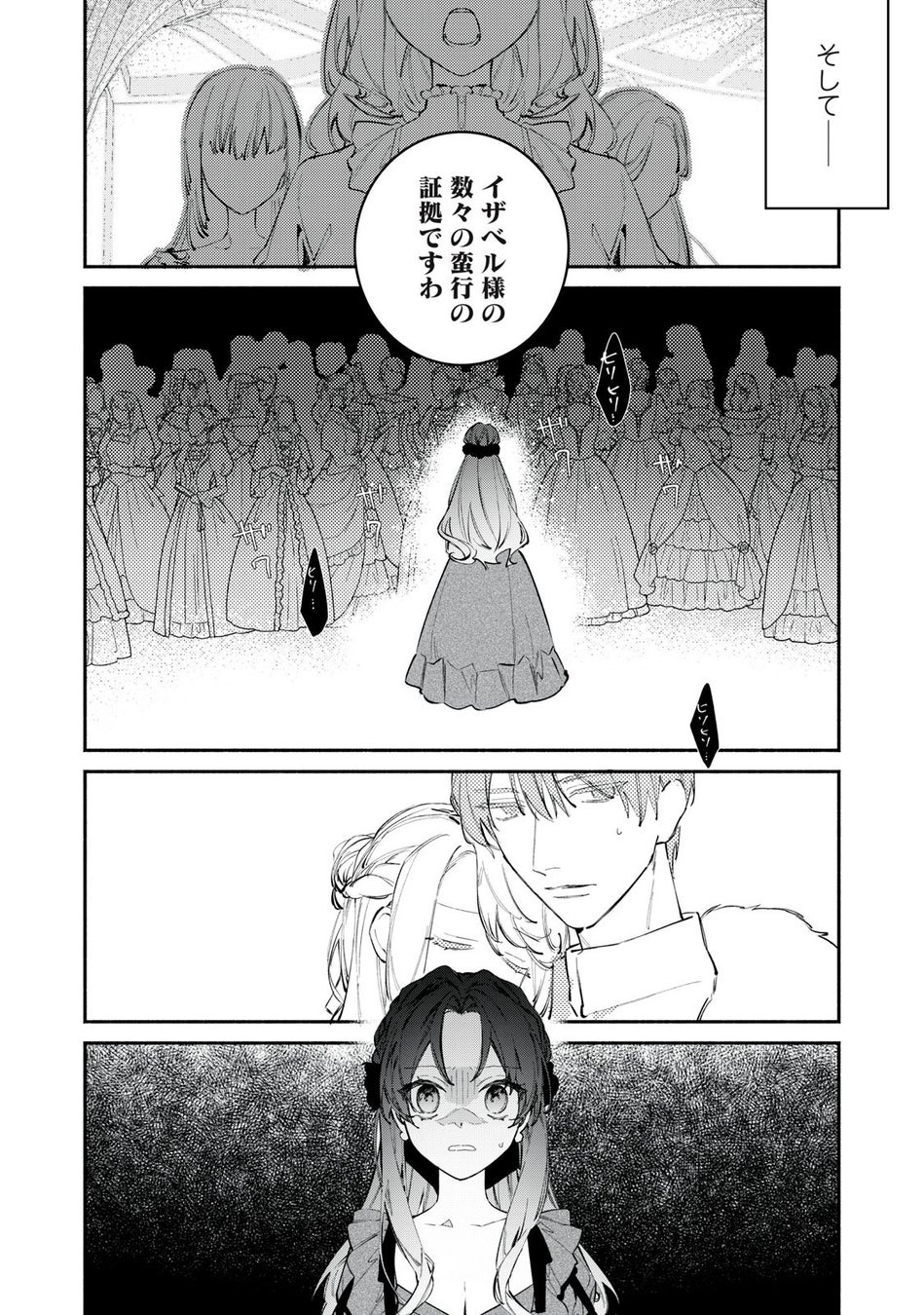 イザベルに憑依した元OLのアキは、彼女の想いを汲み、彼女に冷たくしてきた者たちを拒絶する。