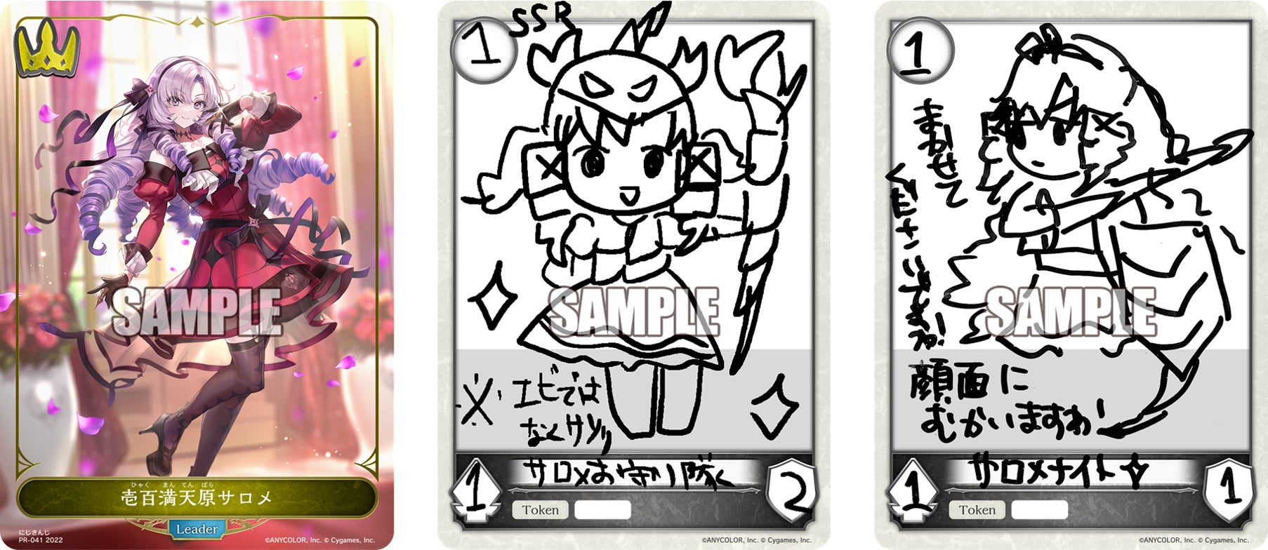 ■ボックス購入特典として「壱百満天原サロメ」リーダーカード1種、もしくは「壱百満天原サロメ」による手描きイラストを用いたトークン2種の計3種から1枚ランダム封入!