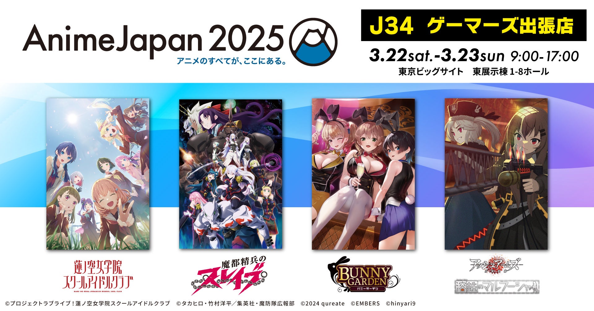 株式会社カードラボ ゲーマーズ(本社:東京都豊島区、https://www.gamers.co.jp/ 以下ゲーマーズ)は、2025年3月22日(土)・23日(日)に東京ビッグサイトで開催される「AnimeJapan 2025」に出張店をオープンすることを発表いたしました。