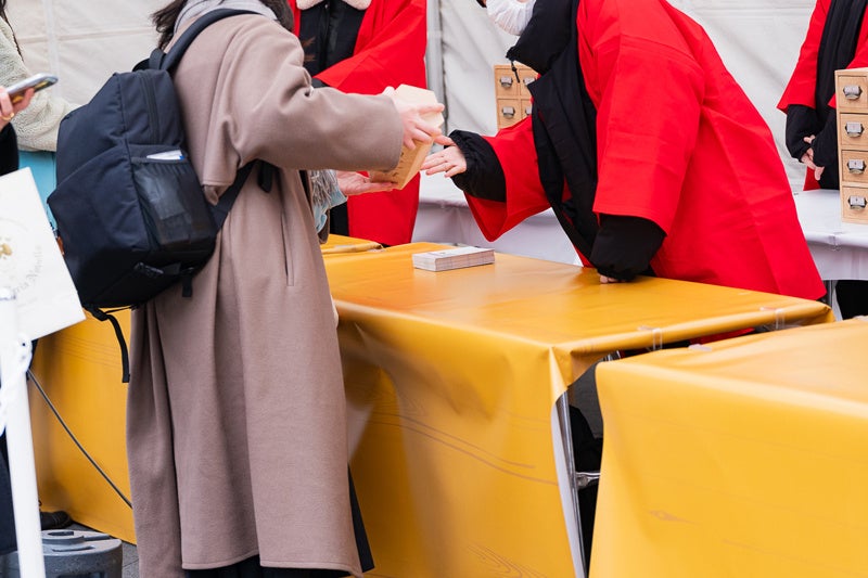 射的、千本吊り、おみくじの3つの縁日企画では、多くのお客様にご参加いただき、会場は大勢のお客様で溢れかえっていました!縁日の参加者にはオノ・タコ氏による描き下ろしイラストを使用したポストカード(全10種)が配られました。