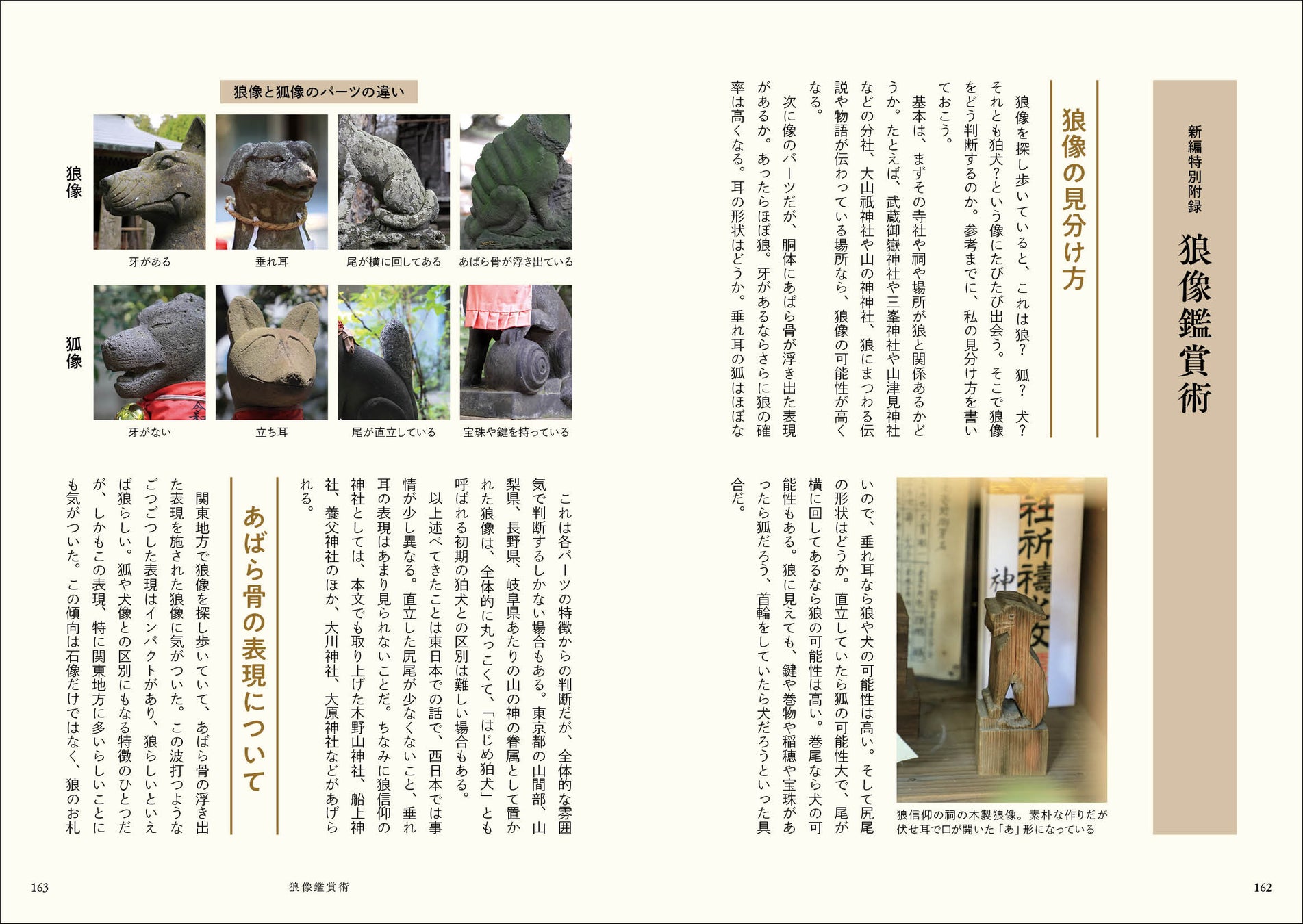 今回の新編刊行のため、装丁を新たにし、「船上神社の狼送り」(鳥取県)と新編特別附録「狼像鑑賞術」を新たに加えました。