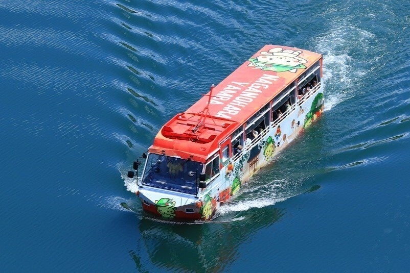 スタンプを8個以上集めると6自治体の賞品から1つまたは八ツ場ダム湖遊覧水陸両用バスペアチケットから1つを選んで応募できます。抽選で各1名様、合計7名様にプレゼント。