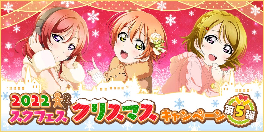 株式会社ブシロード(本社:東京都中野区、代表取締役社長:木谷高明)は、KLab株式会社(本社:東京都港区、代表取締役社長:森田英克)と共同開発いたしましたスマートフォン向けアプリ『ラブライブ!スクールアイドルフェスティバル』(以下、スクフェス) において2022スクフェスクリスマスキャンペーン第5弾の開催をお知らせいたします。