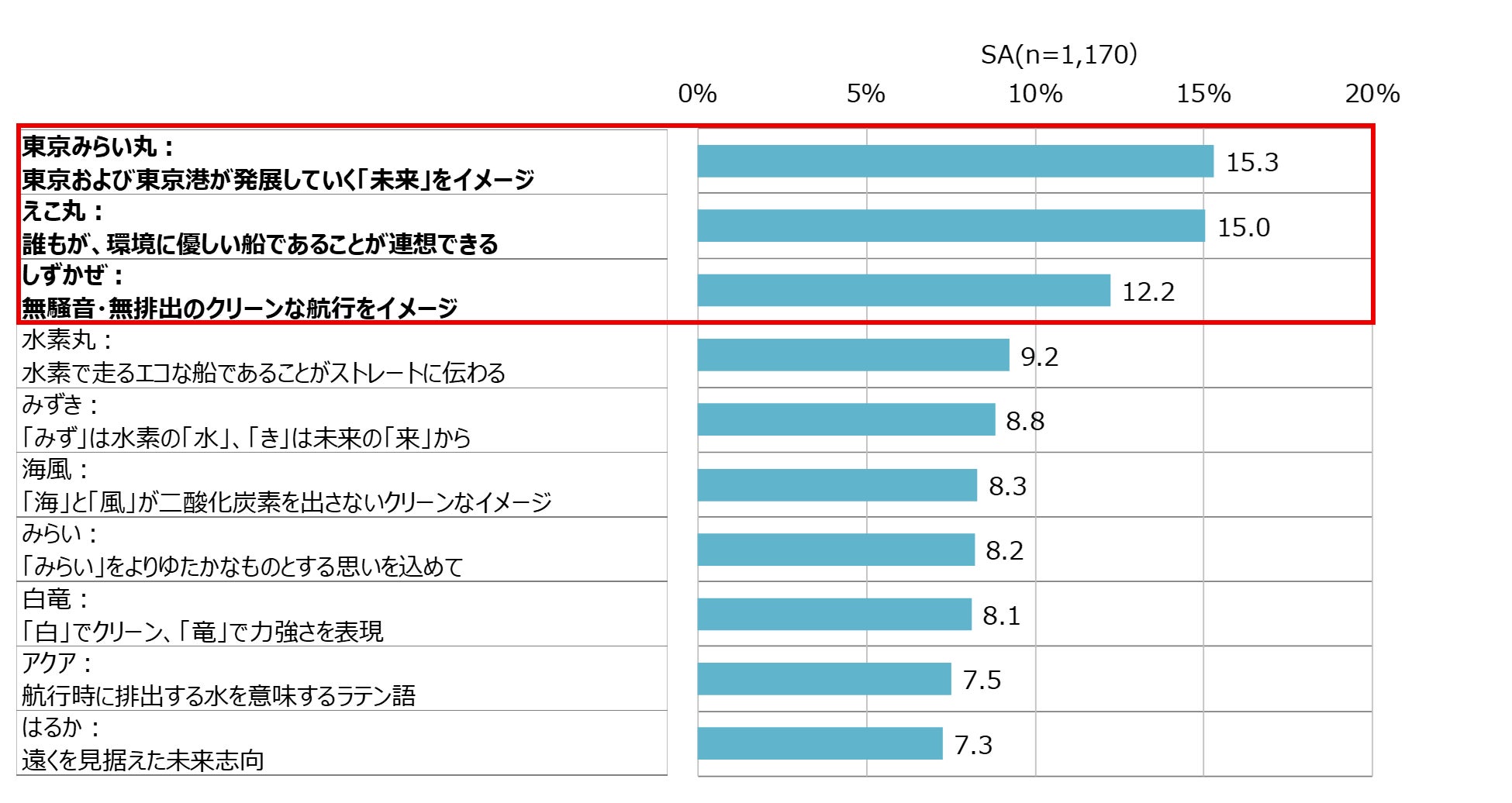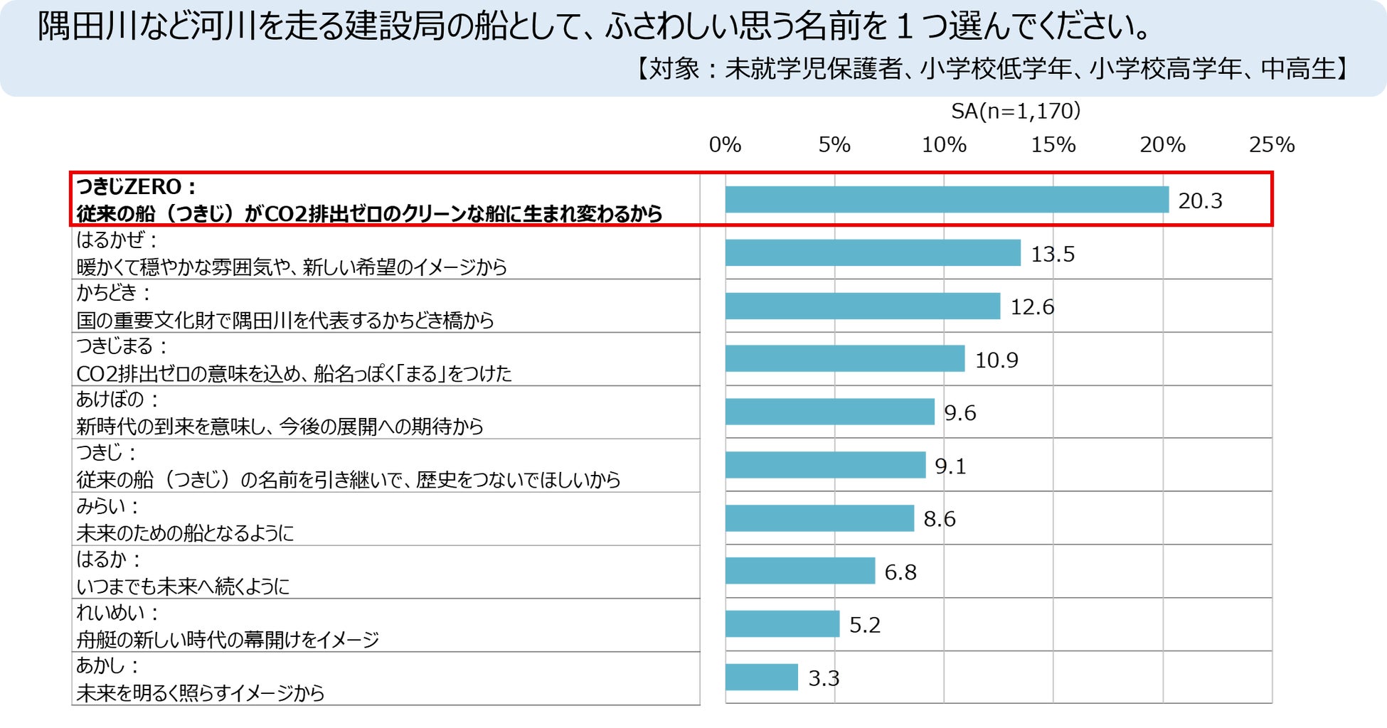 隅田川など河川を走る建設局の船として、ふさわしい思う名前を1つ選んでください。