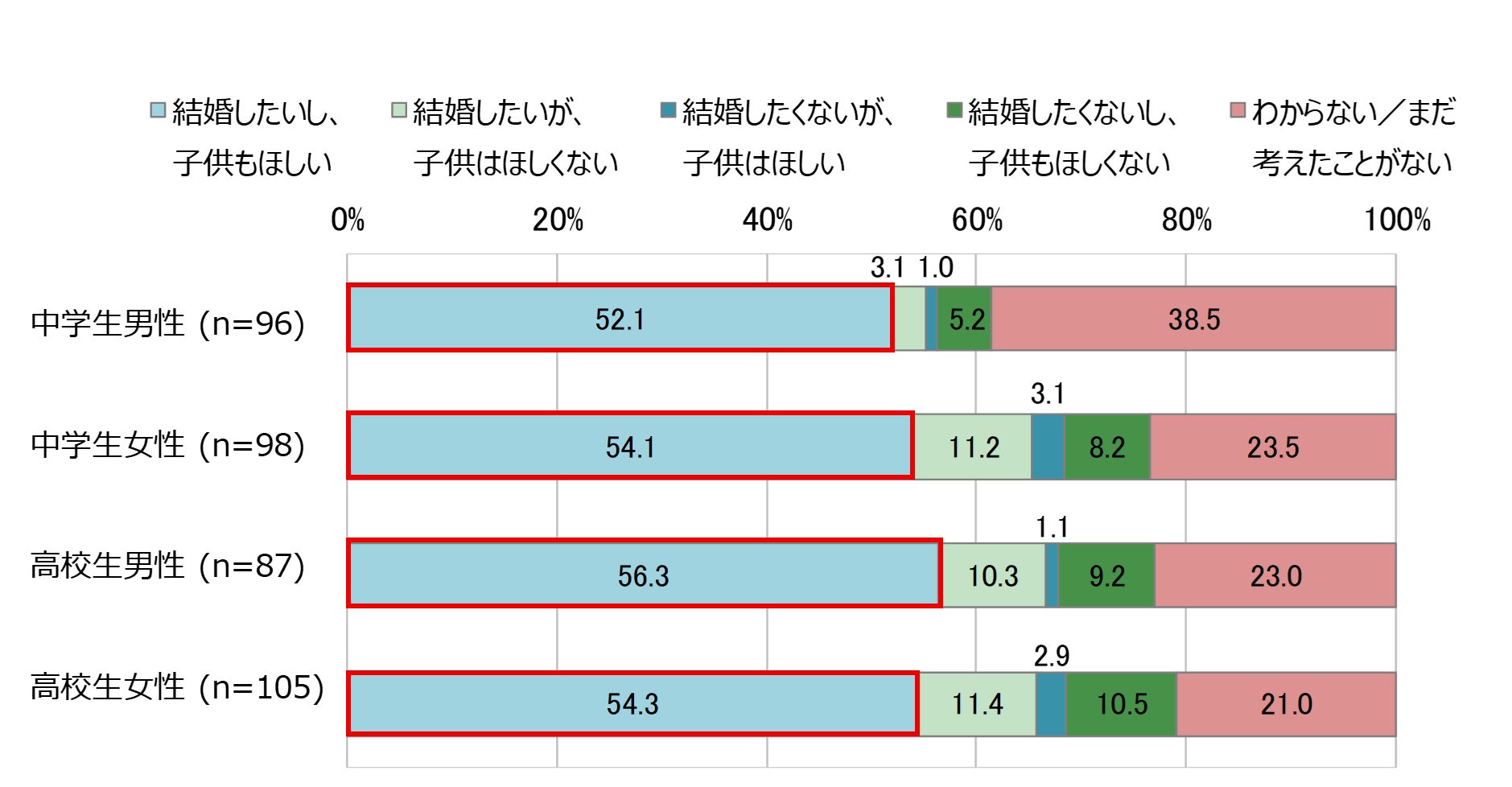 将来、結婚や子供を持つことについて、今の気持ちに近いものを選んでください。