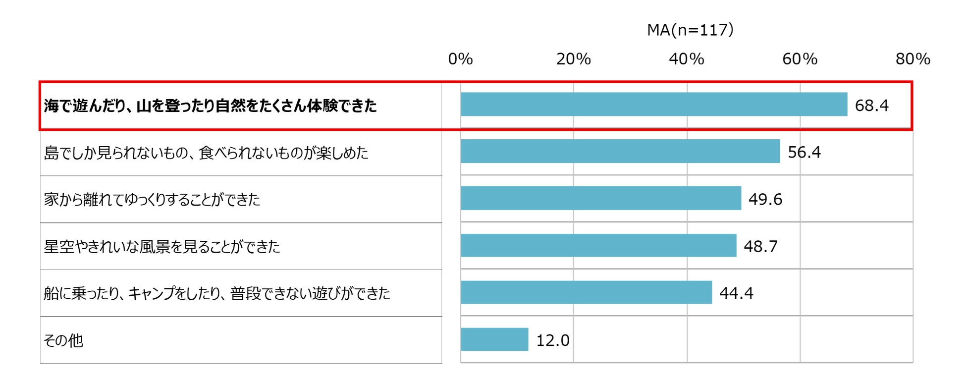 島で楽しかったことや思い出に残っていることはなんですか。(伊豆諸島に行ったことがあると答えた人) 【対象:未就学児保護者、小学校低学年、小学校高学年、中高生】