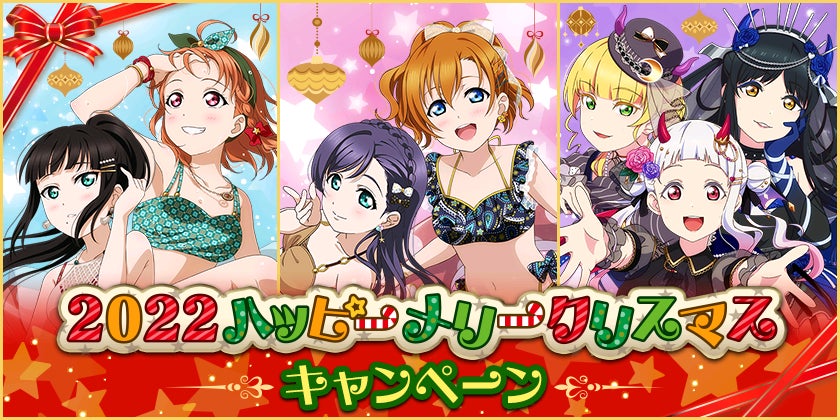 株式会社ブシロード(本社:東京都中野区、代表取締役社長:木谷高明)は、KLab株式会社(本社:東京都港区、代表取締役社長:森田英克)と共同開発いたしましたスマートフォン向けアプリ『ラブライブ!スクールアイドルフェスティバル』(以下、スクフェス) において2022ハッピーメリークリスマスキャンペーンの開催をお知らせいたします。