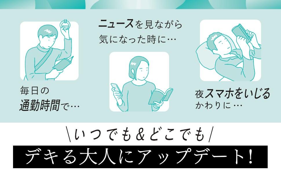 本書は持ち運びやすいハンディサイズで、いつでもどこでも持ち運べるので、通勤時間や寝る前など、毎日のスキマ時間でサクッと読めちゃいます。毎日のスキマ時間で、デキる大人にアップデートしよう!