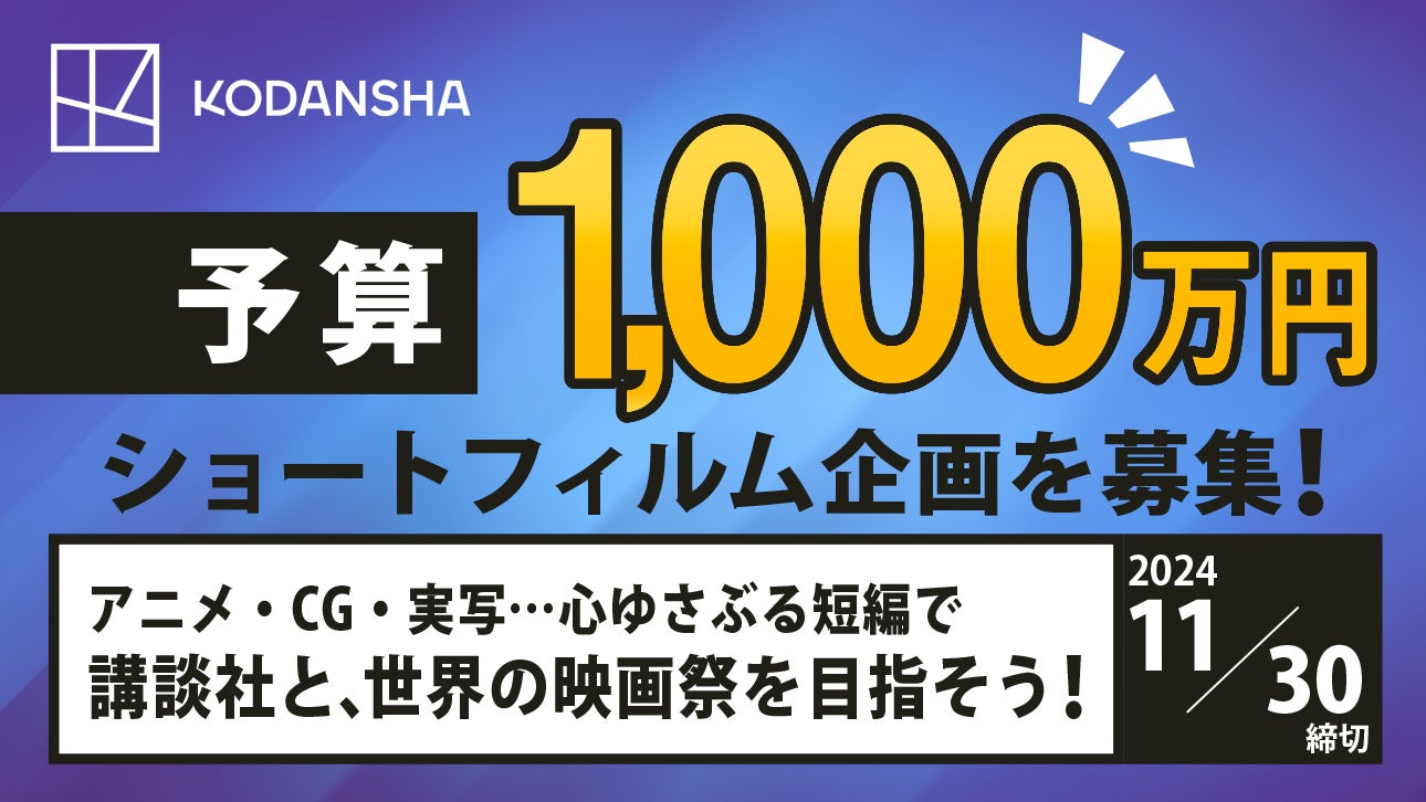 ショートフィルム企画を世界公募し、受賞者に1000万円の資⾦を講談社が提供。