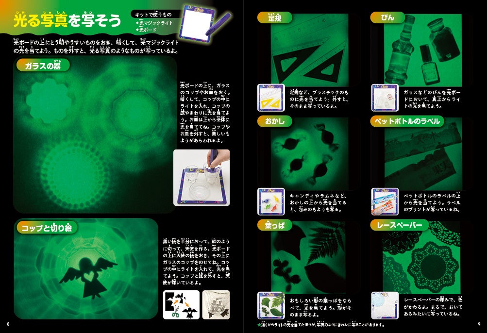 光る絵がかける! 光る写真が写せる! ひみつの手紙が作れる! 身近なものが光る! 幻想的な光の実験がたくさんできるキットです。