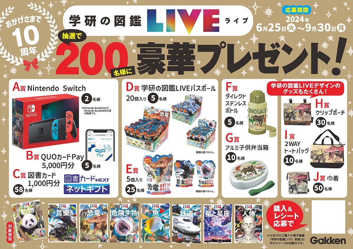 『学研の図鑑LIVE新版』の対象商品をご購入いただいた方の中から、抽選で200名様に豪華プレゼントが当たるキャンペーンを実施いたします。