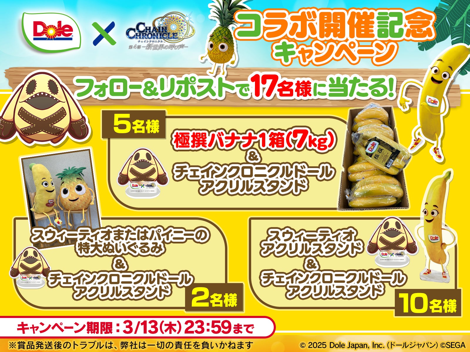 「Dole×チェインクロニクル」コラボ開催記念キャンペーンが始まりました。