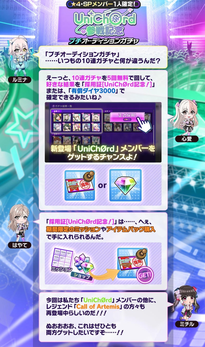 - UniChØrd参戦記念プチオーディションガチャ開催!