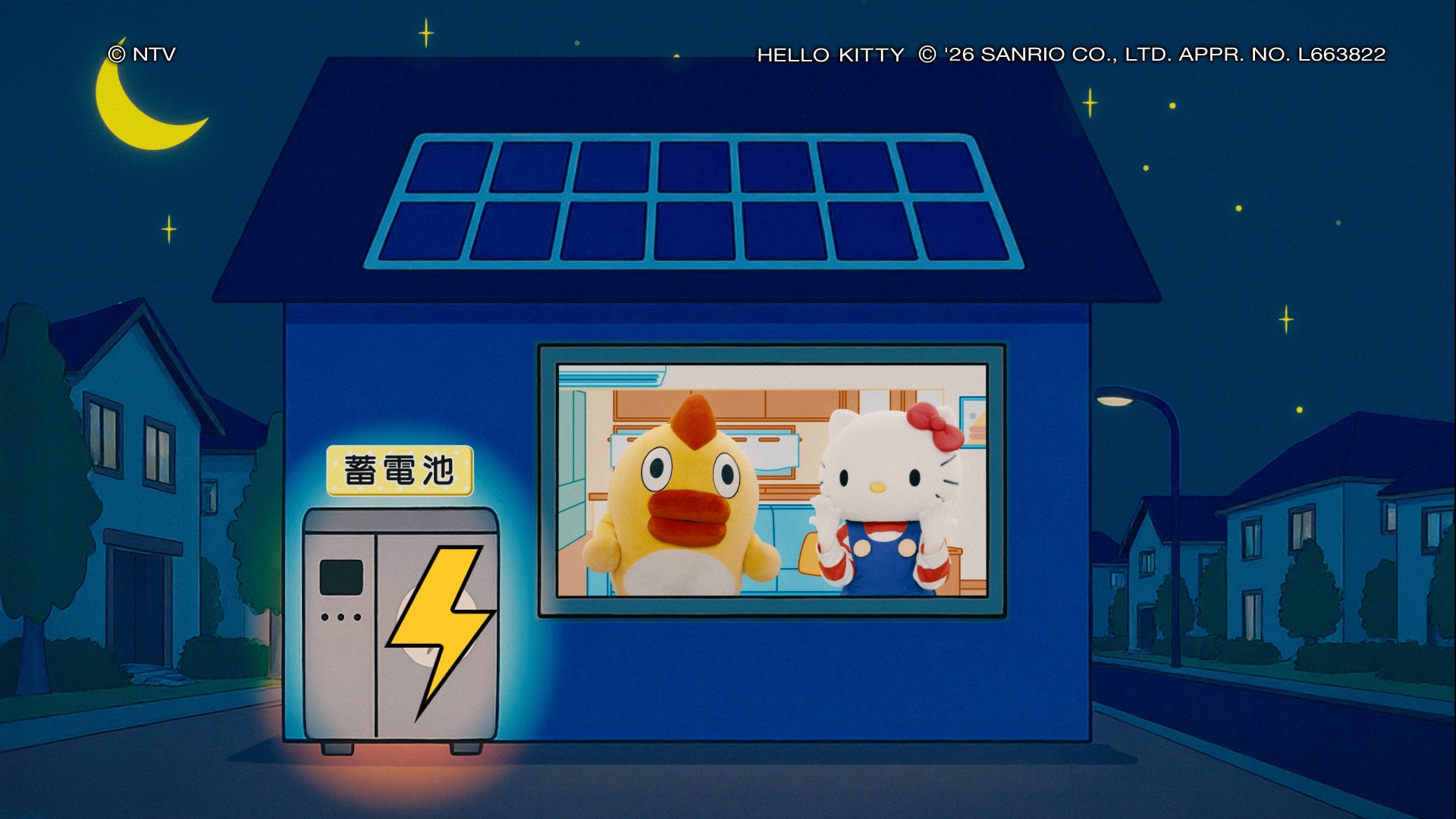 ▼【そらジロー&ハローキティ】冬は太陽光パネルで「燃費のいい家」篇