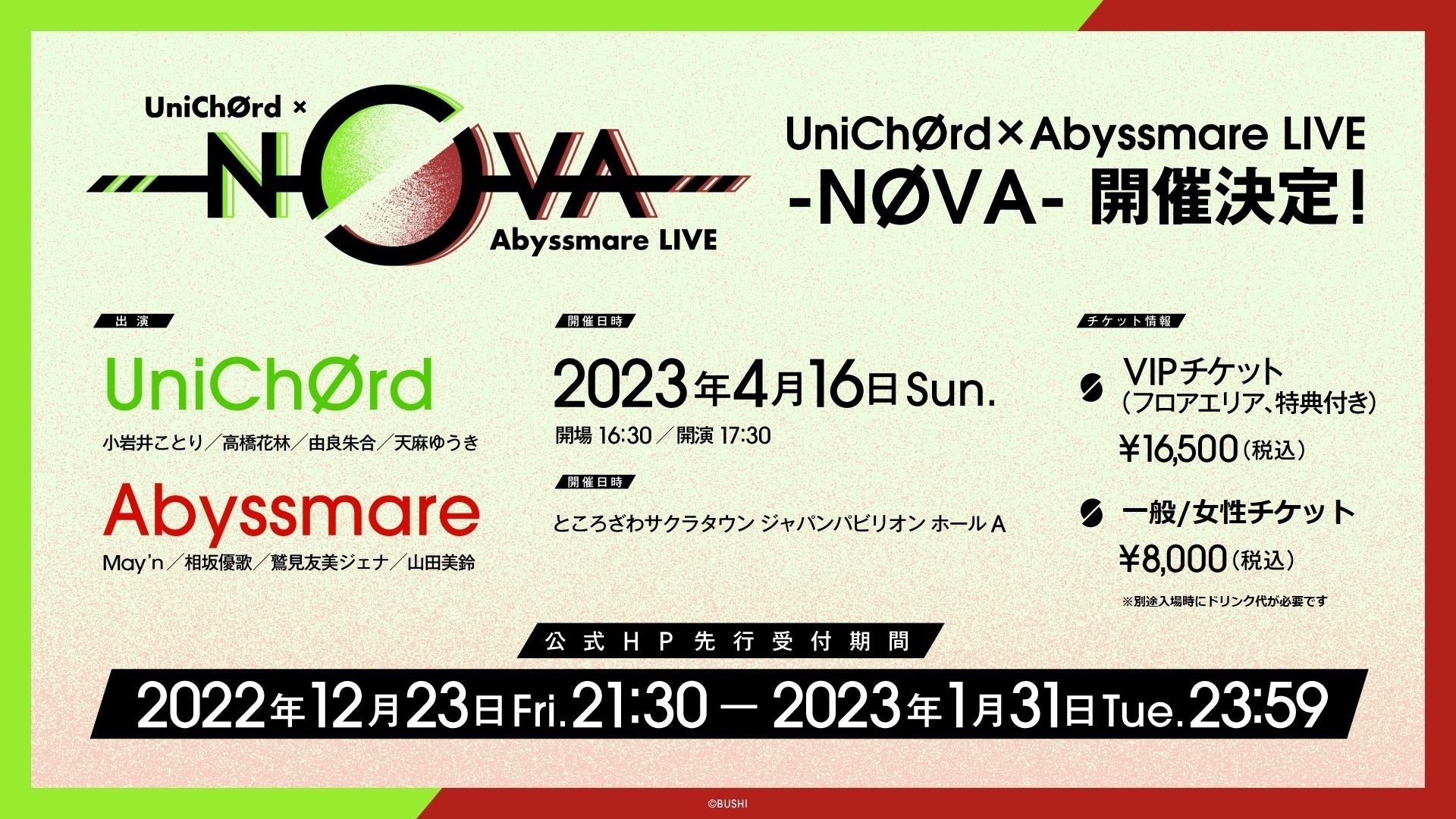 ①2023年4月16日(日)に「UniChØrd×Abyssmare LIVE -NØVA-」が開催決定!また、公式HP先行が受付中!